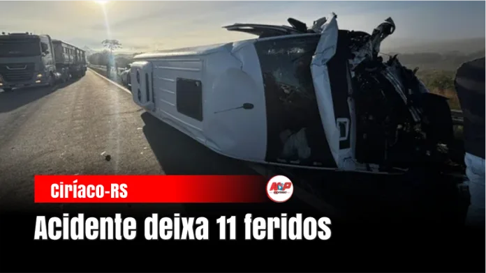 Ciríaco (RS) – (Região de Passo Fundo)– Uma colisão frontal envolvendo uma van de Vanini (RS), que transportava pacientes para Passo Fundo, e uma Montana mobilizou equipes de socorro e deixou 11 pessoas feridas, três em estado grave. O caso aconteceu na manhã desta quinta-feira, na BR-285, próximo à comunidade de Cruzaltinha, em área pertencente a Água Santa.