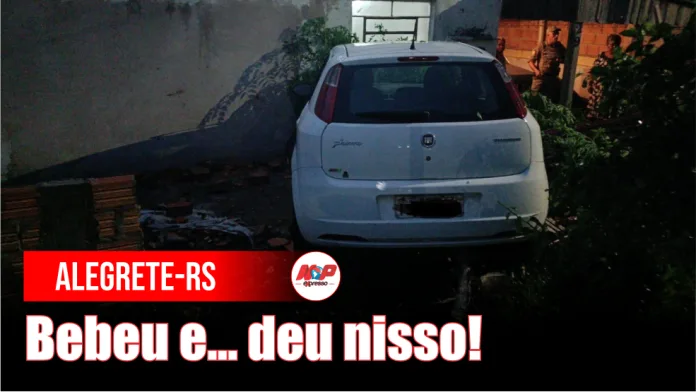 Alegrete – RS – (Região de Uruguaiana) – Um sujeito de 62 anos causou um baita susto na madrugada de Natal, no bairro Santos Dumont. Por volta das 5h09, o motorista perdeu o controle de um Punto e bateu com tudo no muro e na parede de uma casa. A batida foi forte e estragou parte da casa, mas o pior ainda estava por vir para ele. A notícia saiu no site Alegrete Tudo.