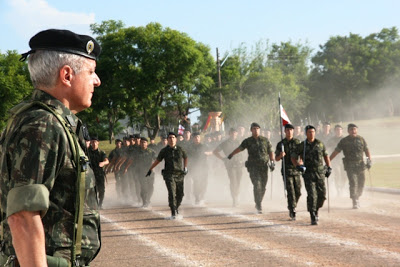 | O general Valério Stumpf sendo homenageado pela tropa |