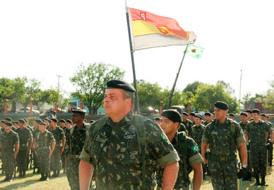 | O coronel Mariath, comandante do 9º B. Log, local da solenidade de comando |