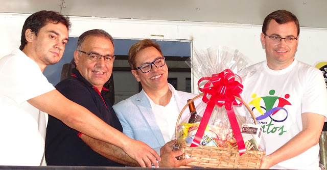 | O patrono João Lemes com professores e alunos da escola Moisés Viana de Florida. |