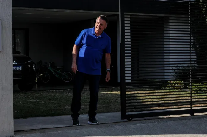 Brasília – DF – Jair Bolsonaro surgiu na porta de casa nesta quarta-feira e sorriu, no primeiro dia em que agentes da Polícia Federal passaram a monitorar sua residência em tempo integral. Em prisão domiciliar, ele utiliza tornozeleira e não pode sair do imóvel.