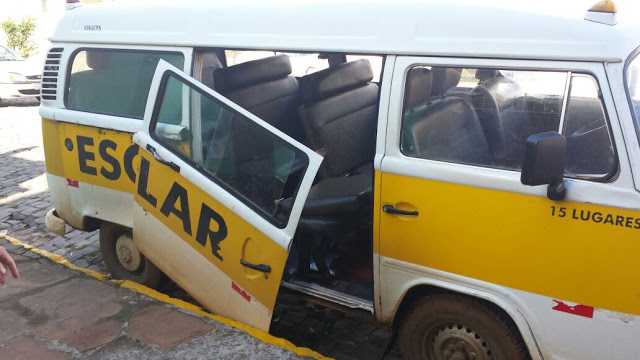 transportes escolares. Foram feitas abordagens em frente da escola Guilhermina.