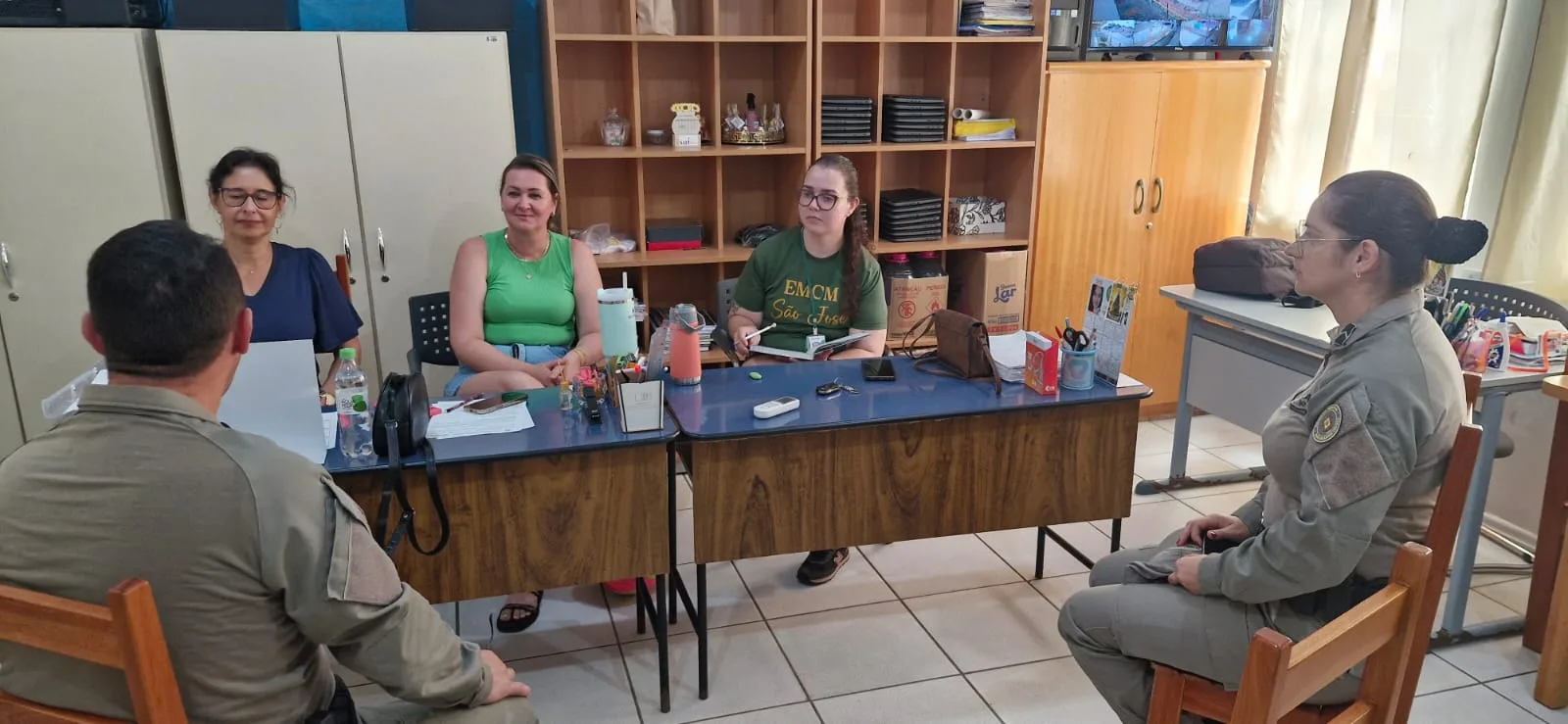 Na sede em Santiago, o comando reuniu-se com a secretária de Educação, Maria Joceli Figueiredo, para alinhar ações preventivas e o cronograma do PROERD para 2026. Além disso, os oficiais visitaram as maiores instituições de ensino da cidade, como a Escola Cívico-Militar São José, o Colégio Monsenhor Assis e o Colégio Medianeira, reafirmando a parceria com as equipes diretivas.