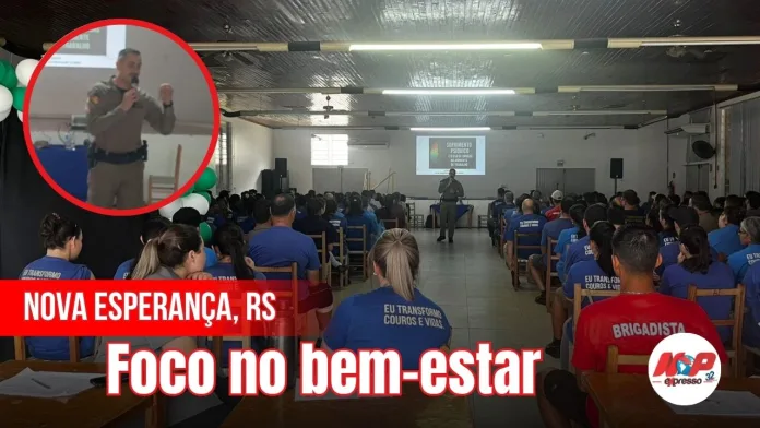Nova Esperança do Sul, RS – A Brigada, por meio 5º RPMon, participou da Semana Interna de Prevenção de Acidentes do Trabalho (SIPAT) da empresa Gobba Leather, abordando o tema “Sofrimento psíquico e o uso de drogas no ambiente de trabalho”.