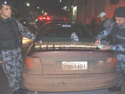 Por um bom tempo, Alison Dorneles Buzata (Santiago) e Geovane Sérgio Sampaio (Santo Augusto) ficarão sem traficar. Eles foram pegos na noite de ontem e estavam com 8 quilos e meio de maconha e 1,37 gramas de cocaína. Brigadianos que andavam pela Aparício Mariense desconfiaram de um Mondeo com placas de Santo Cristo. Ao ver que ia ser abordado o motorista sentou o pé no acelerador e tentou fugir em alta velocidade. O carro foi seguido e os policiais conseguiram pará-lo na esquina do Sindicado Rural. Alison e Geovane foram presos em flagrante.