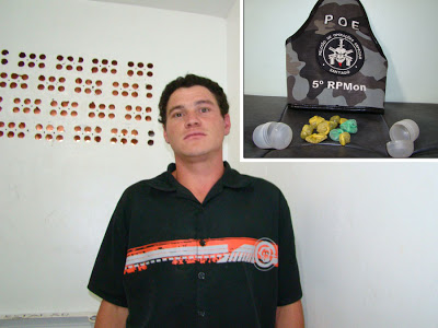 Nesta tarde o batalhão de operações especiais da Brigada prendeu Fabiano da Silva de Jesus, de 22 anos, acusado de tráfico de drogas. Ele caminhava no bairro Jardim dos Eucaliptos e fugiu ao ver uma viatura, mas foi capturado. Os policiais também encontraram um saco com 13 gramas de maconha, que Fabiano tinha jogado fora, antes de ser pego.