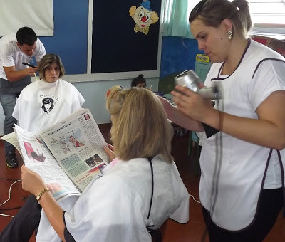 E na Ação Social na Escola Lucas Araújo, o pessoal da Escola Hadassa é boa companhia aos presentes, mas o Expresso não deixa de ser um complemento legal à parte. Aqui, o fotógrafo captou uma pose que reflete bem o que  é conciliar o útil e o agradável…