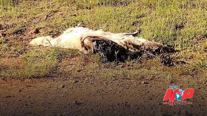 Santiago – Há cinco dias, esse cachorro está morto, rodeado de bichos e jogado à margem da BR 287 em frente a estabelecimentos comerciais (perto dos motéis). A foto do animal foi divulgada nas redes sociais pela santiaguense Munira Nicola. Ela relata ter procurado ajuda para a remoção do animal, mas foi informada de que é necessário encontrar o dono.