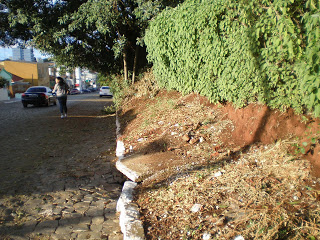 Um leitor enviou e-mail criticando a falta de uma calçada na rua Bento Gonçalves, quase esquina com a Dr. Rivota. O local fica perto do Hospital Militar e é de grande movimento, mas os pedestres se vêem obrigados a sair para a rua por causa de um amontoado de terra e mato, bem ao lado de um prédio.