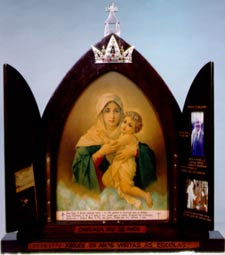 A imagem da “Mãe Peregrina” há mais de 20 anos percorre as casas em Santiago. É uma santinha dentro de uma espécie de igrejinha de madeira, que não chega dar meio metro de altura. Cada morador da rua onde ela passa, fica com a imagem por um dia e devolve ao vizinho, assim, ela vai andando… Mas nesta semana, algo inusitado aconteceu: alguém teria comprado essa imagem e agora há dezenas de religiosos querendo que o camarada devolva a santa, pois não é objeto de venda. (Foto ilustrativa).