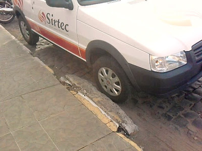 Olá. Não pude deixar em branco esta foto da prestadora de serviço para a Aes Sul (Sirtec). O segurança do trabalho e coordenador da Sirtec estacionaram em rampa para deficiente na rua Marechal Deodoro, em frende à AES SUL. O carro ficou ali por mais de 2h. (Leonardo Dalenogare)