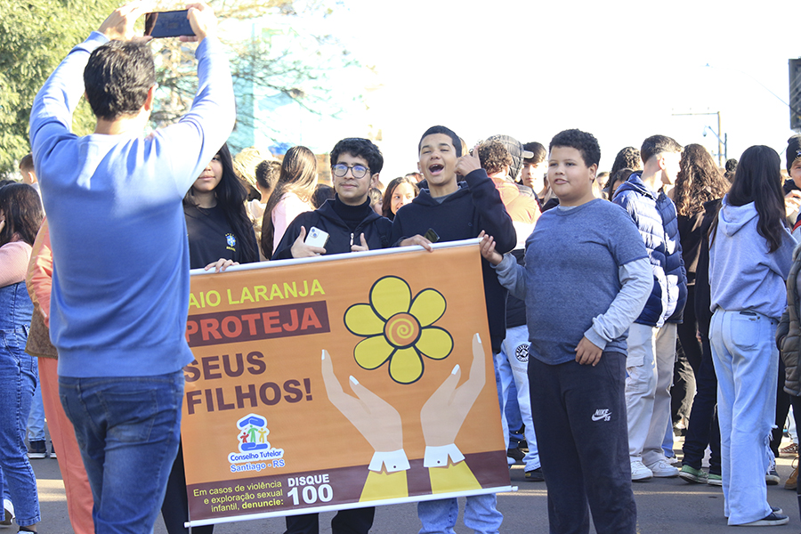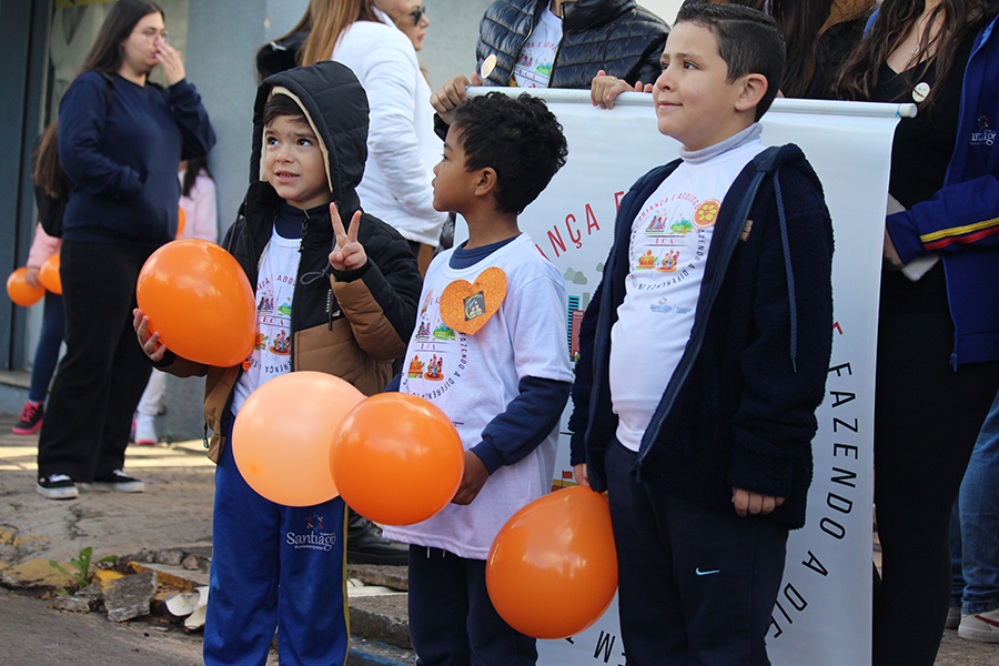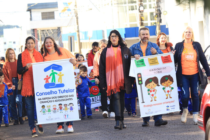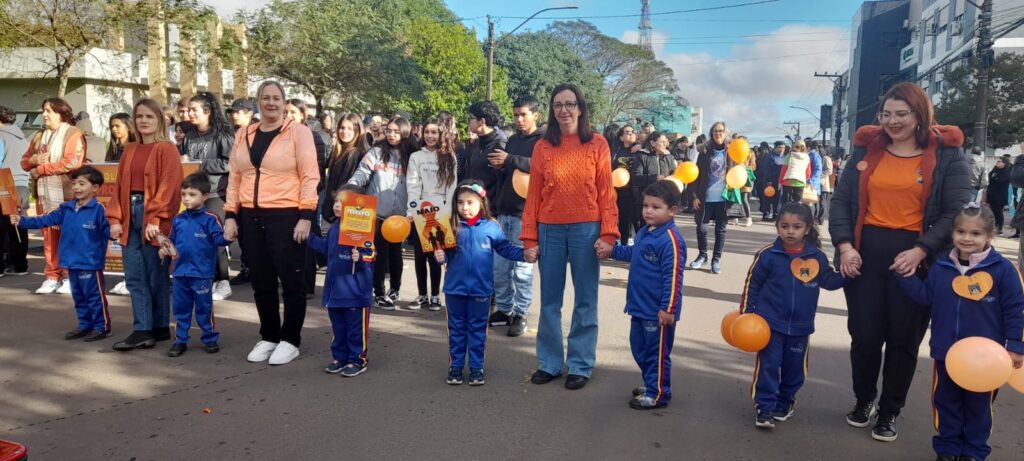 Santiago – Na manhã desta segunda (20/5), uma caminhada pelo centro da cidade marcou o apoio à campanha Maio Laranja.