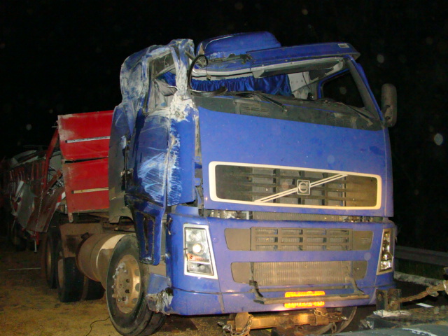 Hoje à tarde, às 17h, um caminhão de São Sepé, que transportava soja, virou numa curva em cima da ponte no Arroio do Tigre na BR 287, contorno de Jaguari. O motorista não sofreu nada grave e já retornou para sua cidade.