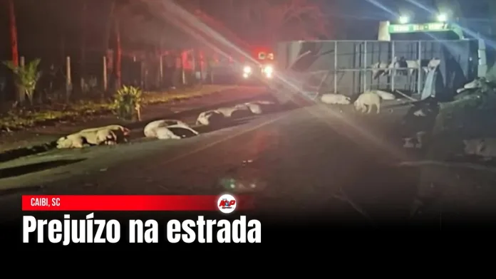 Caibi, SC – Um caminhão carregado com 82 suínos tombou na quinta-feira (05), na SC-283, em Caibi. O veículo era conduzido por um motorista de 26 anos, que não se feriu. O motorista fez o teste do etilômetro, que apontou negativo para álcool.