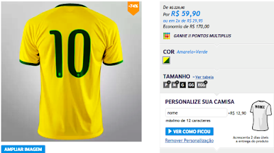 Há cerca de um ano, uma camisa falsificada da Seleção Brasileira, feita com o tecido mais barato possível, era encontrada por até 80 Brasil afora. A oficial, dependendo da versão, rondava os 400. Hoje, depois da saída melancólica da Copa em casa e com o mau desempenho na Copa América, a demanda pela Amarelinha caiu e levou o preço junto. Na Netshoes, principal e-commerce de produtos esportivos do país, uma número 10 está sendo vendida por 59,90 (original).