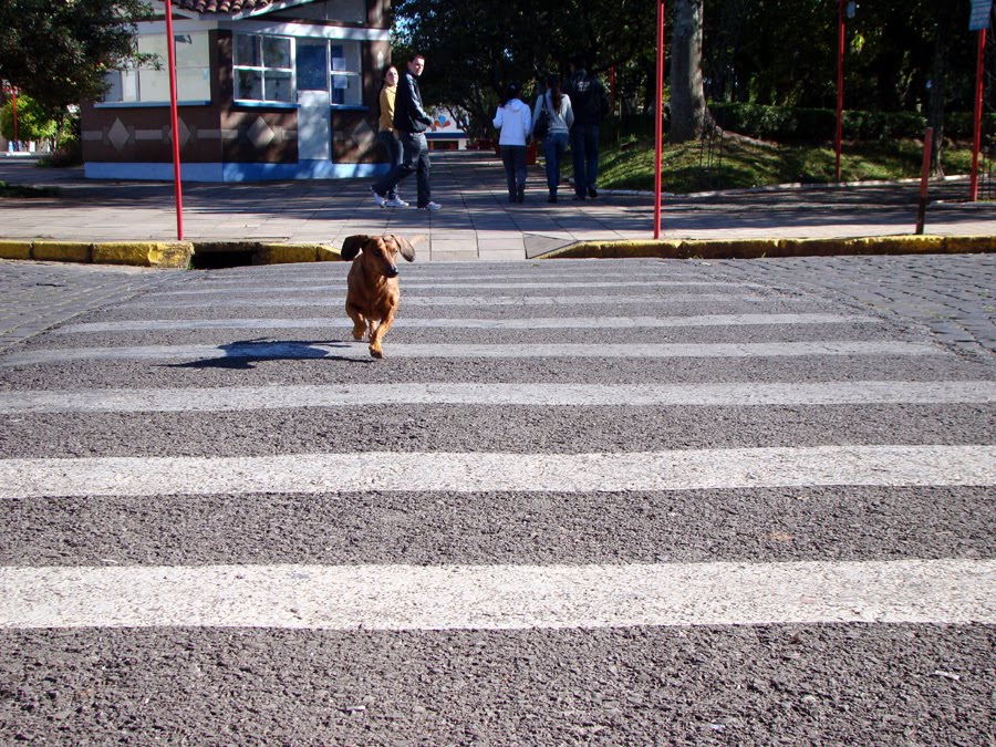 Um flagrante do fotógrafo Rodrigo Leiria, do jornal Expresso Ilustrado, mostra um cachorrinho saindo da praça Moisés Viana para atravessar a rua. O que chama a atenção é que o cão fez exatamente como deve fazer um cidadão educado: atravessar pela faixa de segurança. E, pelo jeito, ele aprendeu a fazer isso só olhando, prova de sua inteligência. Já muitos seres humanos não seguem o exemplo nem com campanhas de conscientização pelo rádio, jornal, TV…