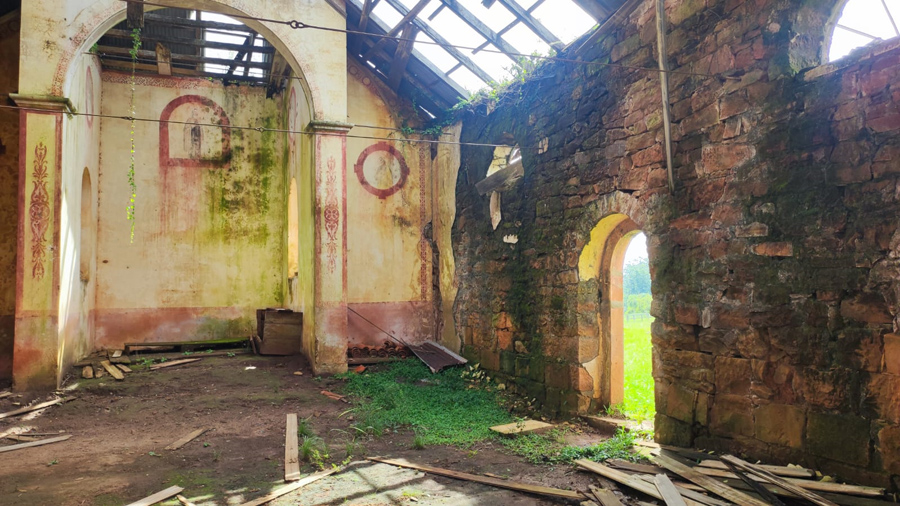 A capela, com sua estrutura robusta, tinha detalhes minuciosos, como o sino consagrado em 1919 e as pinturas murais inauguradas em 1933. Refletia a dedicação e a fé da comunidade imigrante.