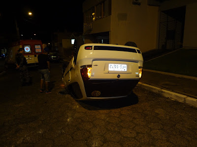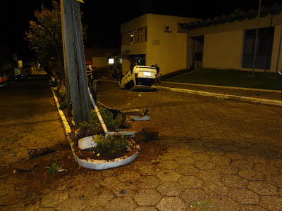 Na madrugada desta sexta-feira, o motorista de um Pálio tentou fazer o retorno na rua 13 de Janeiro, em frente ao Banco do Brasil e capotou o carro ao bater no cordão, numa árvore e na placa de trânsito.