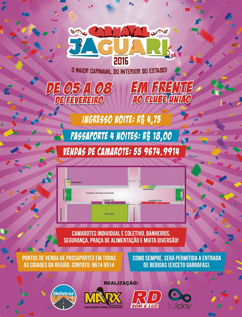 Geral InícioGeral Carnaval de Jaguari: de 5 a 8 de fevereiro Publicado em 22/01/2016 POR NP Expresso FacebookTwitterWhatsAppLinkedinTelegram DEIXE UMA RESPOSTA Cancelar resposta Comentário: Por favor digite seu comentário! Nome:* Por favor, digite seu nome aqui E-mail:* Você digitou um endereço de e-mail incorreto! Por favor, digite seu endereço de e-mail aqui Site: Salve meu nome, e-mail e site neste navegador para a próxima vez que eu comentar. Siga o NP Expresso 184.758 132,618FãsCurtir 73,451SeguidoresSeguir Notícias Recentes Nacional Temer diz não se arrepender de nomear Moraes Brasília, DF - Michel Temer afirmou que fez a escolha certa ao indicar Alexandre... 20/03/2026 Geral Fernando Kruscinscki foi condenado a sete anos de prisão Porto Belo - SC - (Região de Itajaí) - O vocalista da banda de... 20/03/2026 Geral Moraes sofre pressão para mandar Bolsonaro para casa Brasília - DF - O ministro Alexandre de Moraes está sentindo um aperto que... 20/03/2026 Santiago Leilão de veículos e peças em Santiago Santiago, RS - A Jornada Peças e Suprimentos irá realizar um leilão no dia... 20/03/2026 Leia Também Nacional Temer diz não se arrepender de nomear Moraes Brasília, DF - Michel Temer afirmou que fez a escolha certa ao indicar Alexandre... 20/03/2026 Geral Fernando Kruscinscki foi condenado a sete anos de prisão Porto Belo - SC - (Região de Itajaí) - O vocalista da banda de... 20/03/2026 Geral Moraes sofre pressão para mandar Bolsonaro para casa Brasília - DF - O ministro Alexandre de Moraes está sentindo um aperto que... 20/03/2026 VER TODAS AS NOTÍCIAS