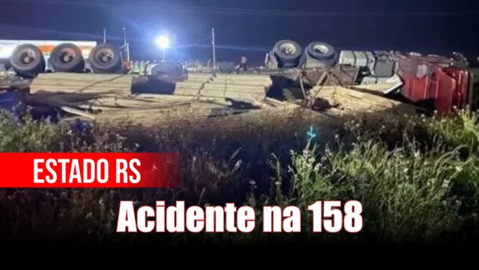 Júlio de Castilhos, RS – No fim da noite desta segunda (22), uma carreta com madeira tombou na BR-158, em Júlio de Castilhos, nas proximidades do trevo de acesso à cidade.