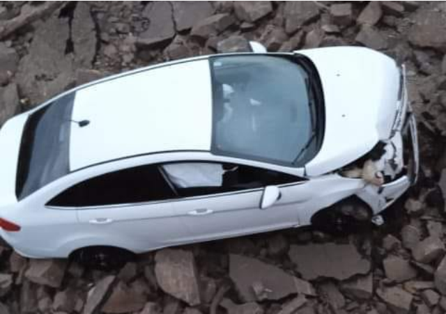 Um carro caiu da ponte que teve suas cabeceiras arrastadas pela enchente na ERS 348. Foi por volta das 07h deste sábado.