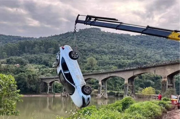 O veículo, um Virtus branco, estava a nove metros de profundidade e foi removido durante a tarde.