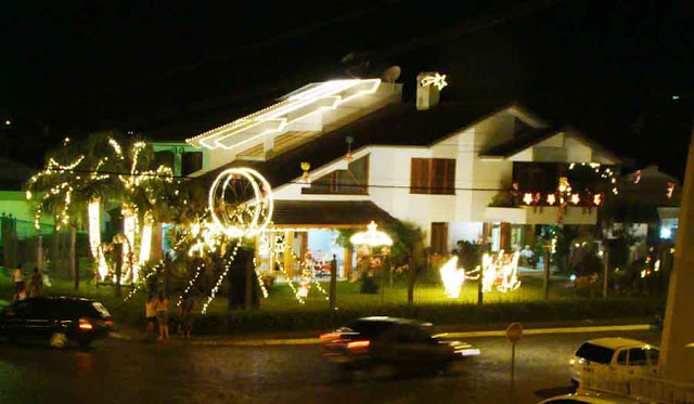 Até o Natal, a casa do agropecuarista Vivaldino Bonotto será um dos lugares mais visitados no centro de Santiago. É que ele e sua esposa, Catarina, enfeitaram todo o jardim e fachada com temas natalinos. Papais noéis é o que não falta e eles estão em vários locais, nas mais diferentes formas. Seja no trenó, em cima da casa ou em uma roda gigante. Para deixar tudo ainda mais mágico, há uma música de Wilson Paim ao fundo. As pessoas param para tirar fotos e quem está de carro diminuiu a velocidade ou estaciona, para ficar admirando toda essa decoração.