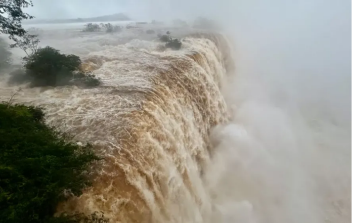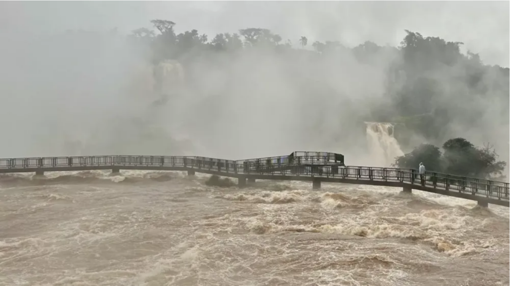 A grande vazão nas quedas da fronteira do Brasil com a Argentina decorre da chuva ocorrida no Paraná, com acumulados de até 100 mm ou mais em vários pontos da bacia do Rio Iguaçu nos últimos dias.