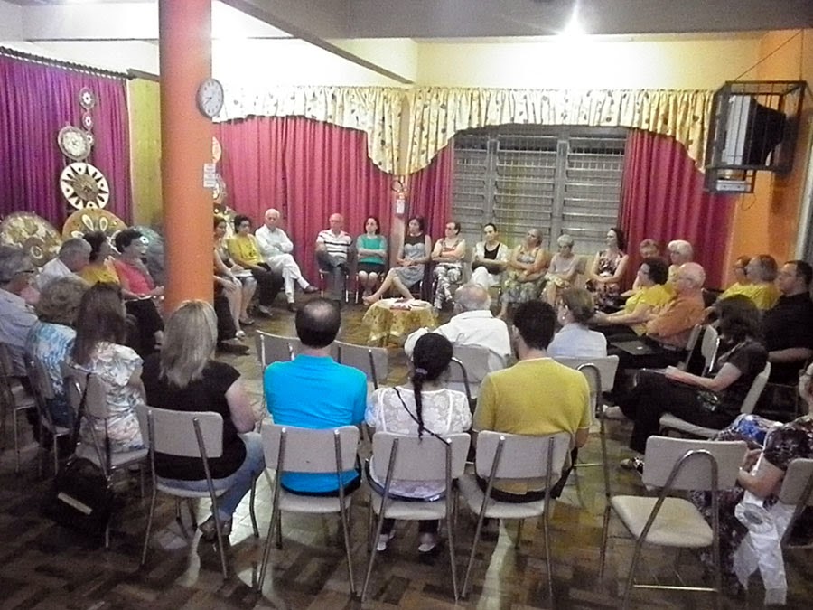 Santiago- Neste sábado, o Centro Cultural comemorou os seus 27 anos com uma atividade que reuniu pessoas das áreas da literatura, música, teatro e artes plásticas, dentre os convidados. Foi feito um círculo interativo para debater alguns temas do livro Palavras de Fogo, do escritor Froilam Oliveira. Os participantes liam um trecho e davam sua opinião, ensejando a troca de ideias. Num segundo momento houve uma homenagem ao diretor de teatro Renato Polga, pelos 26 anos do grupo Artemagika, que ele dirige e que foi um dos vencedores do Santiago Encena. Por fim, teve apresentação do coral da terceira idade, regido pelo músico Diogo Bonatto e foi servido um bolo de aniversário.