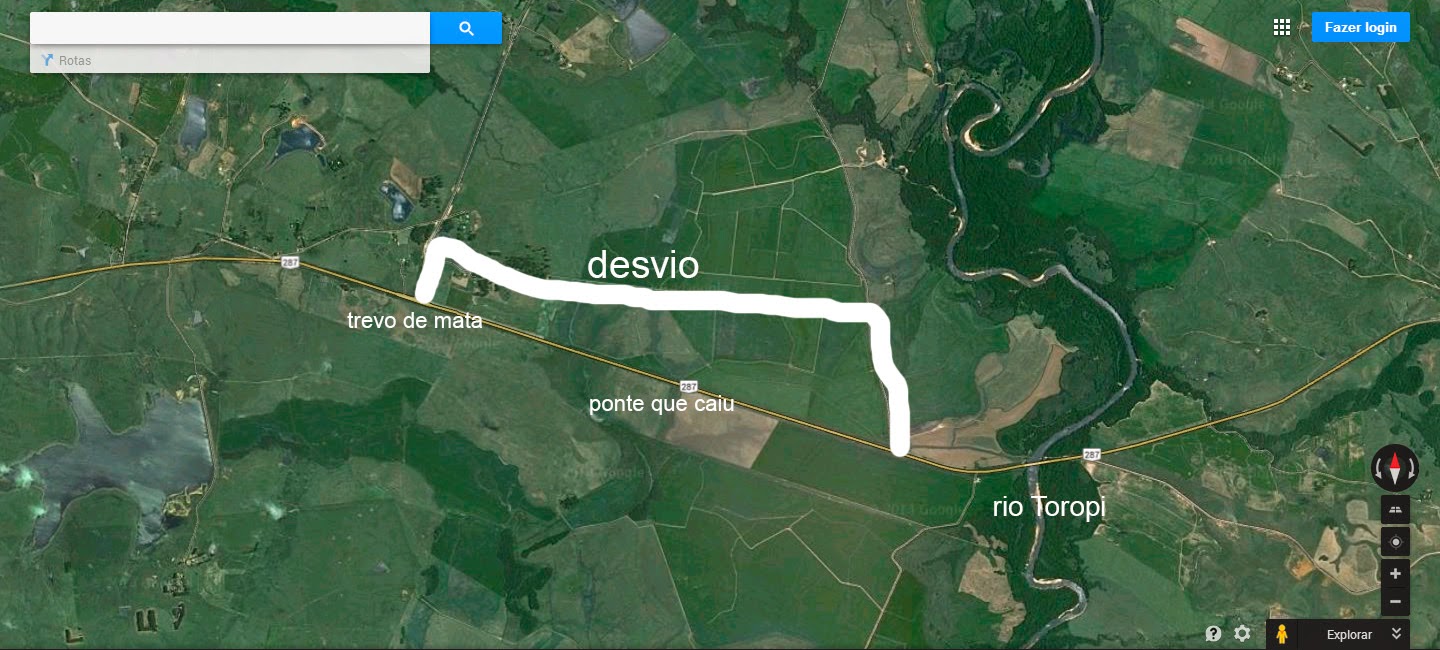 O NOVA PAUTA foi o 1º órgão de imprensa a dar a informação deste desvio, que está sendo usado por centenas de motoristas todos os dias. OBS: para esclarecer de uma vez por todas: não foi a ponte do rio Toropi que caiu, mas uma que fica na várzea, a cerca de 2 km do rio.