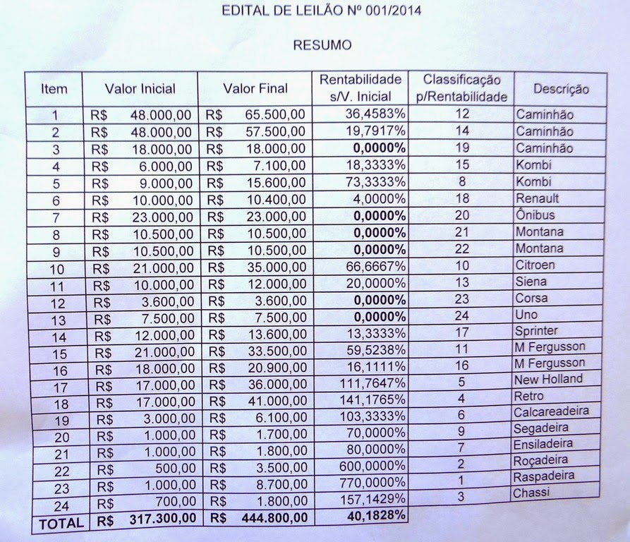 A prefeitura promoveu na quinta, 15, um leilão de bens inservíveis. Foram vendidos caminhões, kombis, carros, um ônibus, tratores, uma retroescavadeira e equipamentos agrícolas. A venda rendeu RS 448.800,00 reais ao município, significando uma arrecadação 40,18% a maior do que o valor de avaliação, que era de R$ 317.300,00. O dinheiro será aplicado na compra de novos veículos, como duas ambulâncias, um carro de sete lugares (para a Assistência Social), um caminhão cabinado (DMAC – Meio Ambiente), uma camionete pequena e calcariadeira. A venda foi feita pela Bronzatto Leilões.