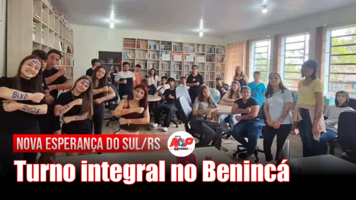 Nova Esperança do Sul/RS – O Colégio Estadual José Benincá iniciou, em 2026, uma nova etapa em sua trajetória com a implantação do Ensino Médio em turno integral, integrado ao Curso Técnico em Administração. A iniciativa representa um marco nos 93 anos da instituição, que segue inovando e ampliando as oportunidades educacionais para os jovens de Nova Esperança do Sul e região.