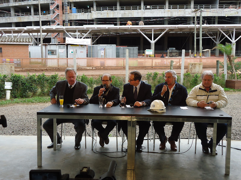 A convite da TV Pampa e do presidente do Grêmio, Paulo Odone, o colunista do Expresso, Ruy Gessiger visitou as obras da Arena. Depois ele gravou o Pampa Debates que irá ao ar sexta-feira. Voltou impressionado com a rapidez e a categoria das obras. Odone explicou que vai ser um dos estádios mais modernos do mundo. A inauguração será dia 8 de dezembro em jogo contra o Hamburgo, da Alemanha.