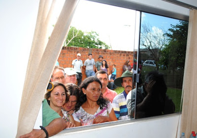Todos na frente da prefeitura sem poder ver o prefeito na sua cadeira oficial.