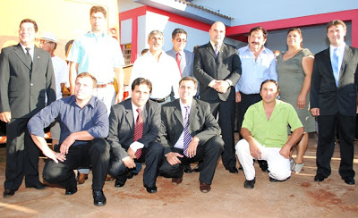 O novo prefeito e seus familiares: a esposa Fátima e os filhos Gabriel e Vinícius. (um deles veio de São Paulo, onde mora, para aplaudir a posse do pai.