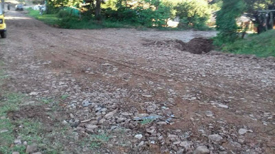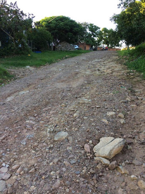 A rua estava assim e foi notícia no Nova Pauta ontem. Hoje já está consertada, como vimos na foto acima.