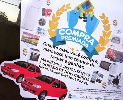 cliente ganha uma raspadinha para concorrer a dois carros, que serão sorteados