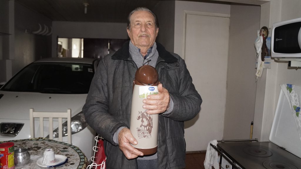 Renato Berguemaier, 84 anos, morador da rua Ernesto Alves, também em São Francisco de Assis. Ele já é do nosso time de assinante e ganhou uma garrafa térmica 2l, nessa categoria.