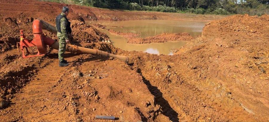 A propriedade já possui duas barragens irregulares. Uma casa de máquinas já etsava pronta para uso. O proprietário foi identificado e responderá por crimes ambientais.