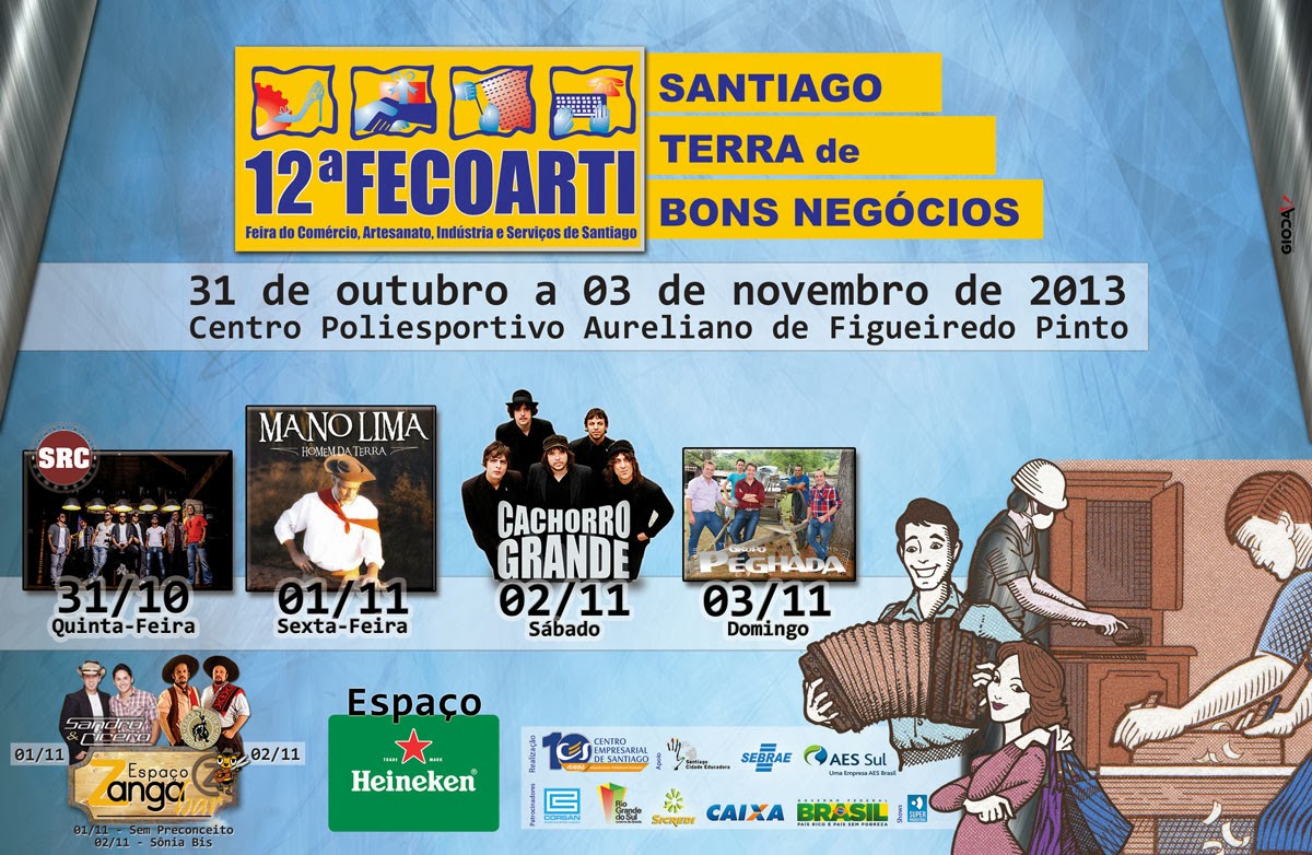 Geral InícioGeral Contando os dias para a 12ª Fecoarti… Publicado em 02/10/2013 POR NP Expresso FacebookTwitterWhatsAppLinkedinTelegram A maior feira comercial, industrial, de artesanato e serviços será de 31 de outubro a 03 de novembro. Vem aí a 12ª Fecoarti, para mostrar o potencial de Santiago e oferecer muitas opções de lazer. DEIXE UMA RESPOSTA Cancelar resposta Comentário: Por favor digite seu comentário! Nome:* Por favor, digite seu nome aqui E-mail:* Você digitou um endereço de e-mail incorreto! Por favor, digite seu endereço de e-mail aqui Site: Salve meu nome, e-mail e site neste navegador para a próxima vez que eu comentar. Siga o NP Expresso 184.758 132,325FãsCurtir 72,154SeguidoresSeguir Notícias Recentes Política Foram-se os tigres, foram-se os bugres, mas a história continua O investimento foi de 300 mil do próprio município Jaguari - RS - A reinauguração... 08/03/2026 Nacional PL vai trabalhar para que fim da 6×1 não seja votado, diz Valdemar a empresários Brasília, DF - O presidente nacional do PL, Valdemar Costa Neto, disse que o... 08/03/2026 Acidentes Duas mort3s: atropelamento em Santa Maria e queda de árvore em Cruz Alta Santa Maria/Cruz Alta - RS - Dois acidentes trágicos registrados neste fim de semana... 08/03/2026 Nacional Pressão por impeachment de Moraes cresce após mensagens de Vorcaro Brasília, DF - Romeu Zema, governador de Minas Gerais e pré-candidato à Presidência pelo... 08/03/2026 Leia Também Política Foram-se os tigres, foram-se os bugres, mas a história continua O investimento foi de 300 mil do próprio município Jaguari - RS - A reinauguração... 08/03/2026 Nacional PL vai trabalhar para que fim da 6×1 não seja votado, diz Valdemar a empresários Brasília, DF - O presidente nacional do PL, Valdemar Costa Neto, disse que o... 08/03/2026 Acidentes Duas mort3s: atropelamento em Santa Maria e queda de árvore em Cruz Alta Santa Maria/Cruz Alta - RS - Dois acidentes trágicos registrados neste fim de semana... 08/03/2026 VER TODAS AS NOTÍCIAS