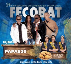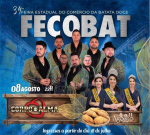 Além da atração principal, que é a batata-doce e seus derivados, a organização já divulgou dois grandes shows. Na quinta (8), o pavilhão de shows receberá Corpo e Alma, banda com mais de 50 anos de carreira e vários sucessos estourados.