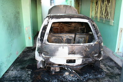 Na madrugada desta segunda, um Corsa pegou fogo na garagem de uma casa na Travessa Jaime Pinto. O carro ficou semidestruíudo e a dona do carro, Janaína Cáceres Dorneles, precisou ser levada para o hospital, pois está grávida  e ficou muito nervosa. A suspeita é que o incêndio tenha sido criminoso.