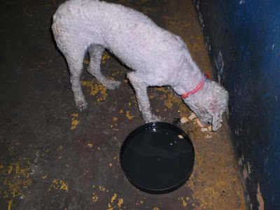 “Ela está com pelos cortados, tem três estrelinhas nas orelhas e  possui uma coleirinha de renda vermelha e rosa. Se alguém souber de quem é, só busca-la aqui. Está com muita fome (comeu várias bolachas), sede e muito magra. Pode estar abandonada há dias.”