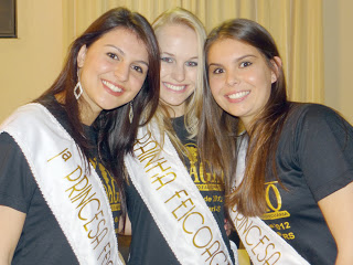 | A rainha Kelen (ao centro), com as princesas Letícia e Betina. |