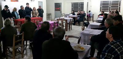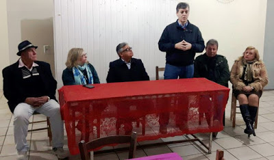O deputado Edson Brum esteve em Santiago e conversou com as lideranças ligadas ao PMDB e convidados. Ele é hoje um dos deputados mais influentes. Em uma prosa simples, mas muito didática, falou de seus projetos e analisou o governo Sartori. Disse que houve economia de um bilhão com os vários cortes, a exemplo das secretarias. Não fosse isso, teria sido muito difícil de pagar as folhas de pagamento de novembro e dezembro. Hoje a meta é a renegociação da dívida com o governo federal, um pedido de todos os estados, o que permitiria um equilíbrio da situação.