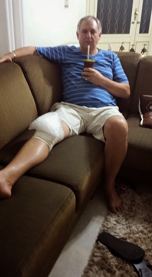 E na foto abaixo temos outro político em recuperação. O João Mário também está de molho por causa da operação no joelho. Enquanto ele mateia e se recupera, o vice-prefeito Sidi Santos toma conta da prefeitura e de sua cadeira.