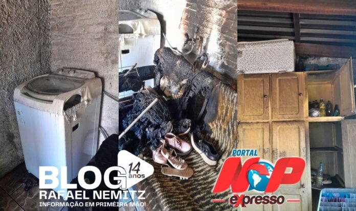 As chamas queimaram um sofá, roupas e parte da máquina de lavar roupas. O fogo só não se alastrou porque a mangueira da máquina de roupas derreteu e a água apagou as chamas.