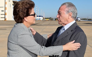 A presidente Dilma esteve ao lado do vice Michel Temer em evento público pela primeira vez desde que recebeu dele uma carta, na qual o peemedebista fazia reclamações sobre a falta de confiança que recebia da presidente. Os dois participaram de cerimônia de cumprimentos aos oficiais-generais do Exército. Os cumprimentos foram encerrados ao som da música “Amigos para Sempre”, entoada pela banda dos militares. (Fonte: Zero Hora)
