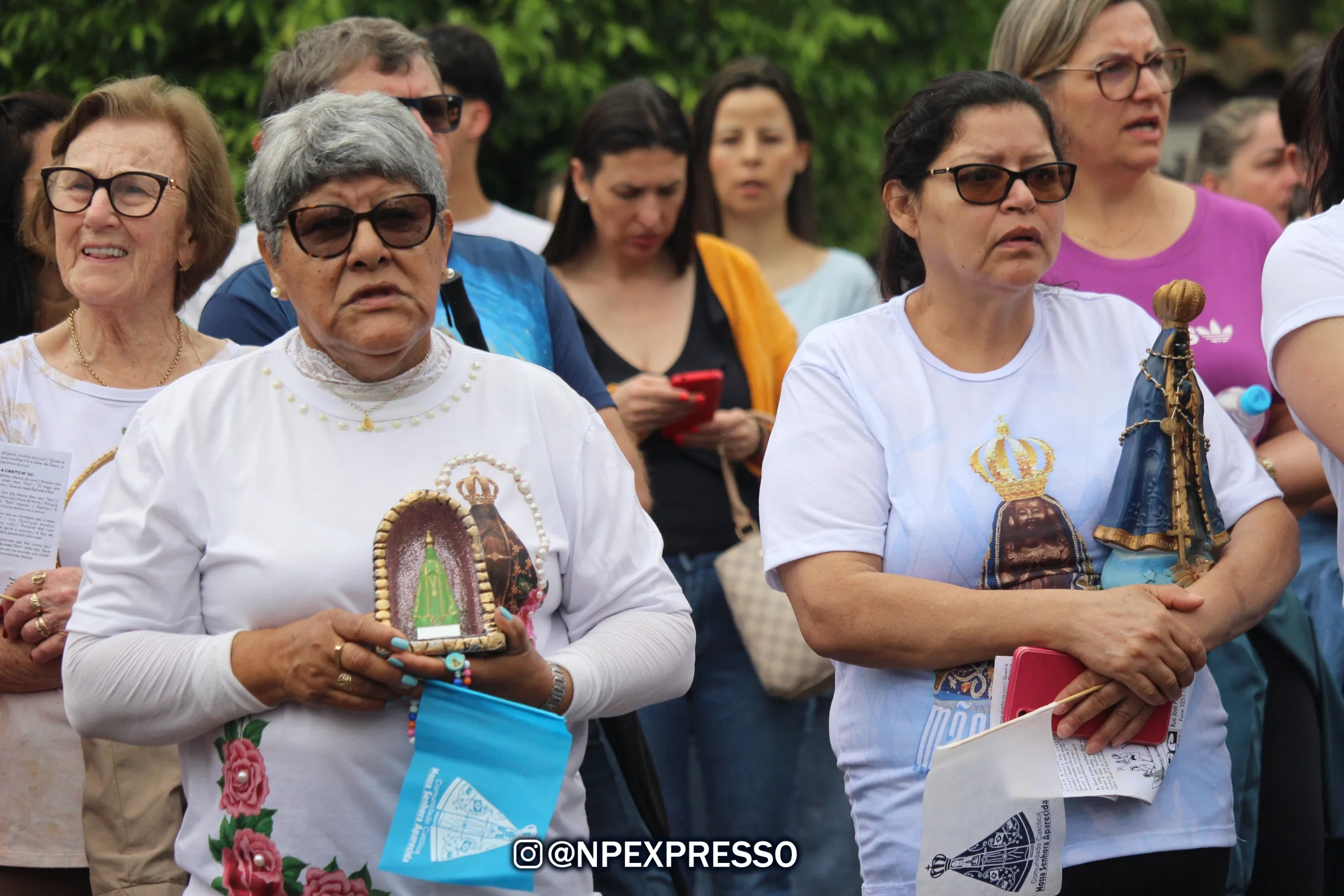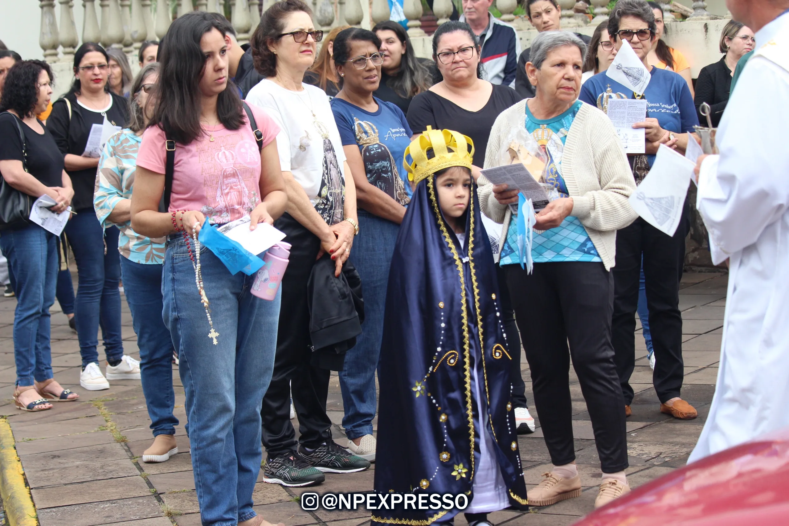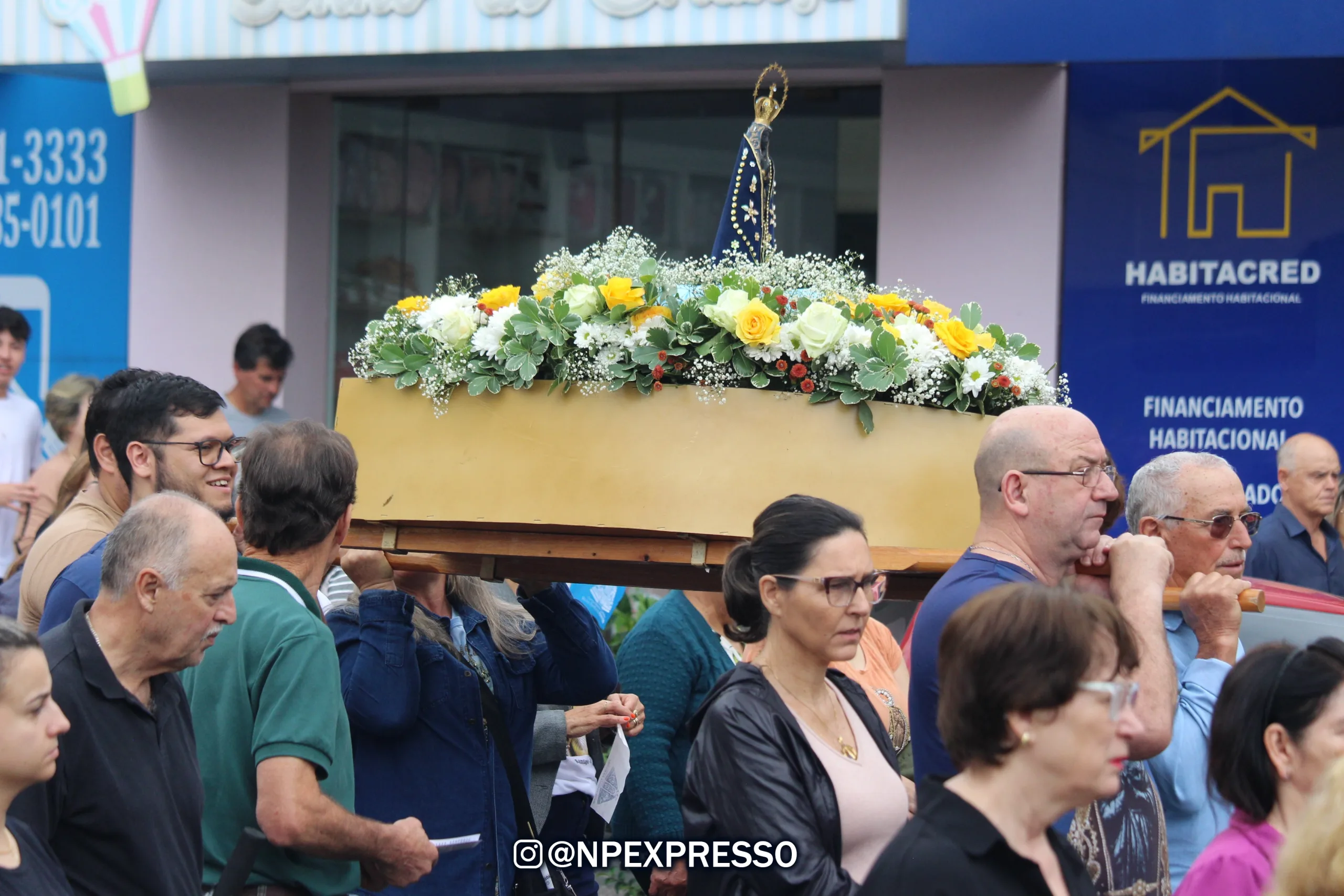 Na sequência, a procissão seguiu a pé da Igreja Matriz até a Capela Nossa Senhora Aparecida, no bairro Santiago Pompeo. A programação no local inclui missa, almoço e festejos populares durante a tarde.